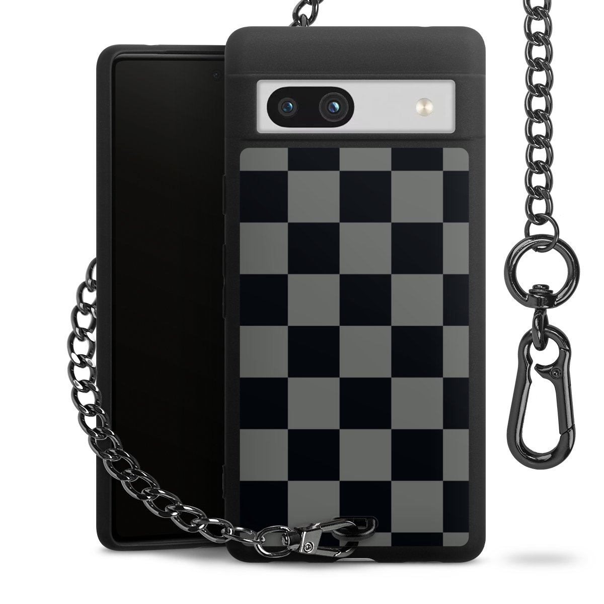 Die mattschwarze Silikon-Handyhülle besteht aus robustem TPU (thermoplastisches Polyurethan). Sie ist flexibel und schützt Dein Smartphone vor Stößen und Kratzern. Die Kette sowie der Karabinerhaken sind aus Metall in Gunmetal-Optik gefertigt. Für dieses Produkt kommen ausschließlich TÜV-geprüfte Materialien zum Einsatz.
