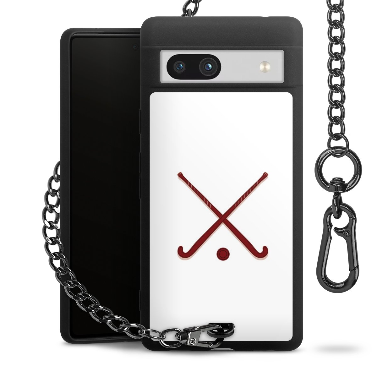 • Mattschwarze Handyhülle mit Metallkette