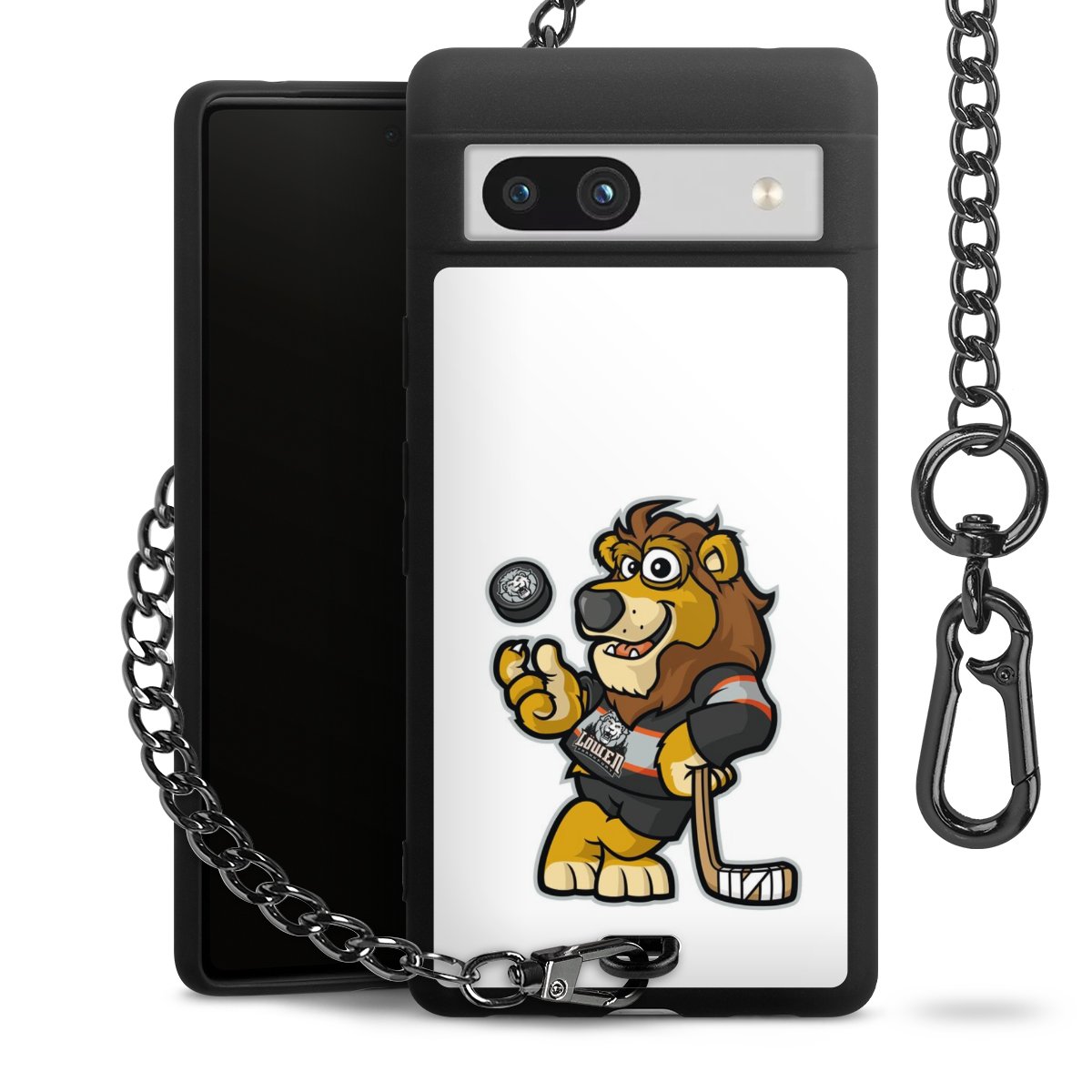 Die mattschwarze Silikon-Handyhülle besteht aus robustem TPU (thermoplastisches Polyurethan). Sie ist flexibel und schützt Dein Smartphone vor Stößen und Kratzern. Die Kette sowie der Karabinerhaken sind aus Metall in Gunmetal-Optik gefertigt. Für dieses Produkt kommen ausschließlich TÜV-geprüfte Materialien zum Einsatz.