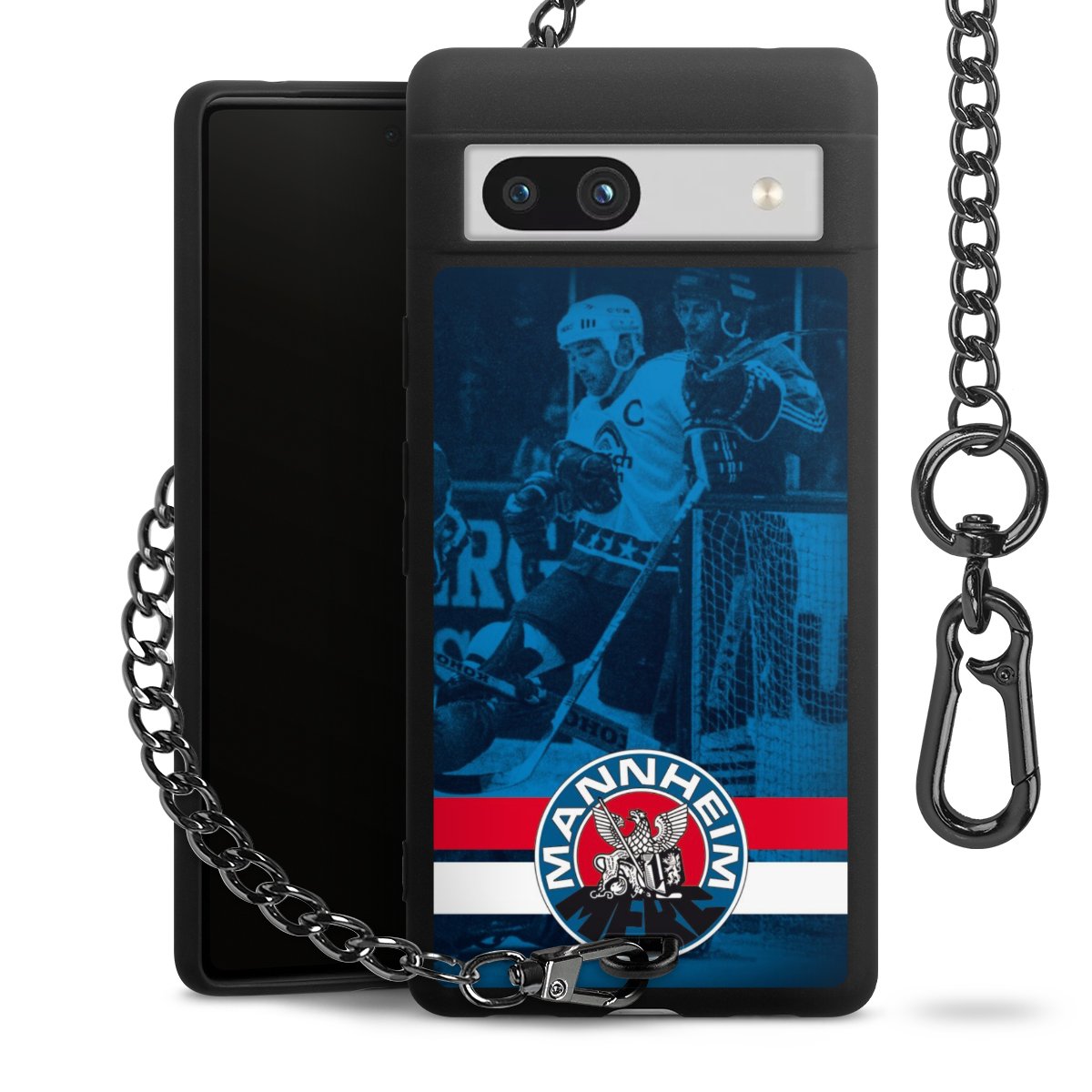 Die mattschwarze Silikon-Handyhülle besteht aus robustem TPU (thermoplastisches Polyurethan). Sie ist flexibel und schützt Dein Smartphone vor Stößen und Kratzern. Die Kette sowie der Karabinerhaken sind aus Metall in Gunmetal-Optik gefertigt. Für dieses Produkt kommen ausschließlich TÜV-geprüfte Materialien zum Einsatz.