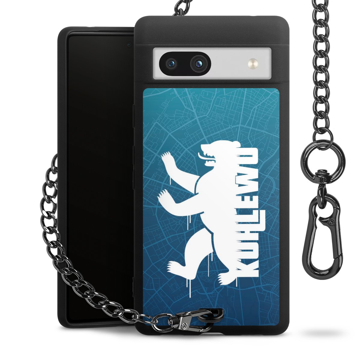 Die mattschwarze Silikon-Handyhülle besteht aus robustem TPU (thermoplastisches Polyurethan). Sie ist flexibel und schützt Dein Smartphone vor Stößen und Kratzern. Die Kette sowie der Karabinerhaken sind aus Metall in Gunmetal-Optik gefertigt. Für dieses Produkt kommen ausschließlich TÜV-geprüfte Materialien zum Einsatz.