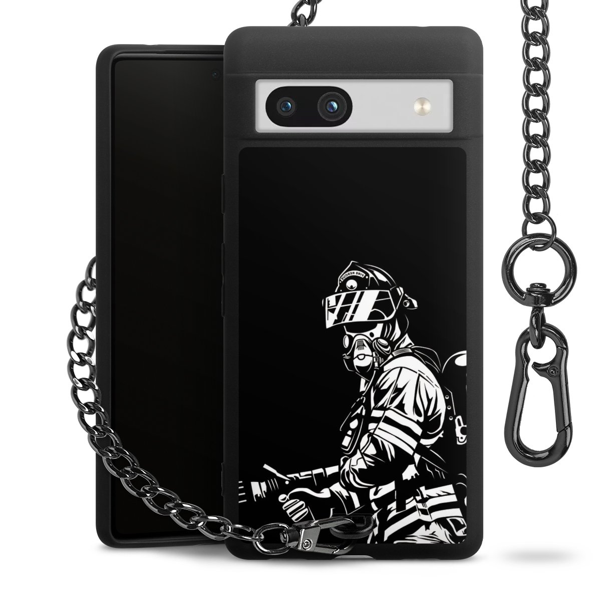 Die mattschwarze Silikon-Handyhülle besteht aus robustem TPU (thermoplastisches Polyurethan). Sie ist flexibel und schützt Dein Smartphone vor Stößen und Kratzern. Die Kette sowie der Karabinerhaken sind aus Metall in Gunmetal-Optik gefertigt. Für dieses Produkt kommen ausschließlich TÜV-geprüfte Materialien zum Einsatz.