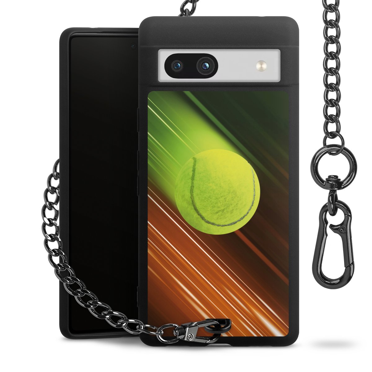 Die mattschwarze Silikon-Handyhülle besteht aus robustem TPU (thermoplastisches Polyurethan). Sie ist flexibel und schützt Dein Smartphone vor Stößen und Kratzern. Die Kette sowie der Karabinerhaken sind aus Metall in Gunmetal-Optik gefertigt. Für dieses Produkt kommen ausschließlich TÜV-geprüfte Materialien zum Einsatz.