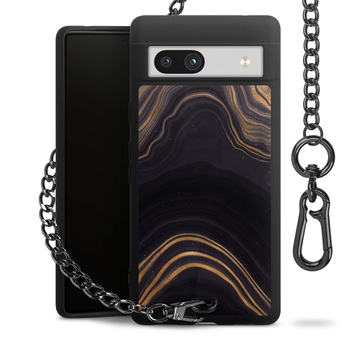 • Mattschwarze Handyhülle mit Metallkette