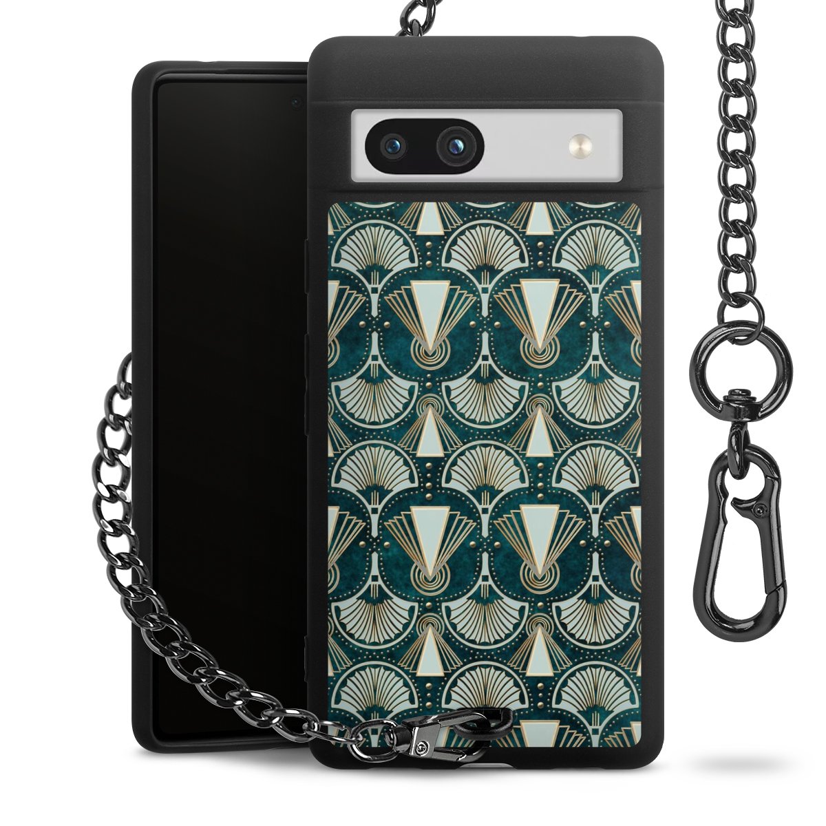 Die mattschwarze Silikon-Handyhülle besteht aus robustem TPU (thermoplastisches Polyurethan). Sie ist flexibel und schützt Dein Smartphone vor Stößen und Kratzern. Die Kette sowie der Karabinerhaken sind aus Metall in Gunmetal-Optik gefertigt. Für dieses Produkt kommen ausschließlich TÜV-geprüfte Materialien zum Einsatz.