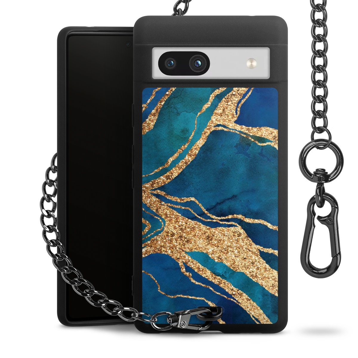 • Mattschwarze Handyhülle mit Metallkette