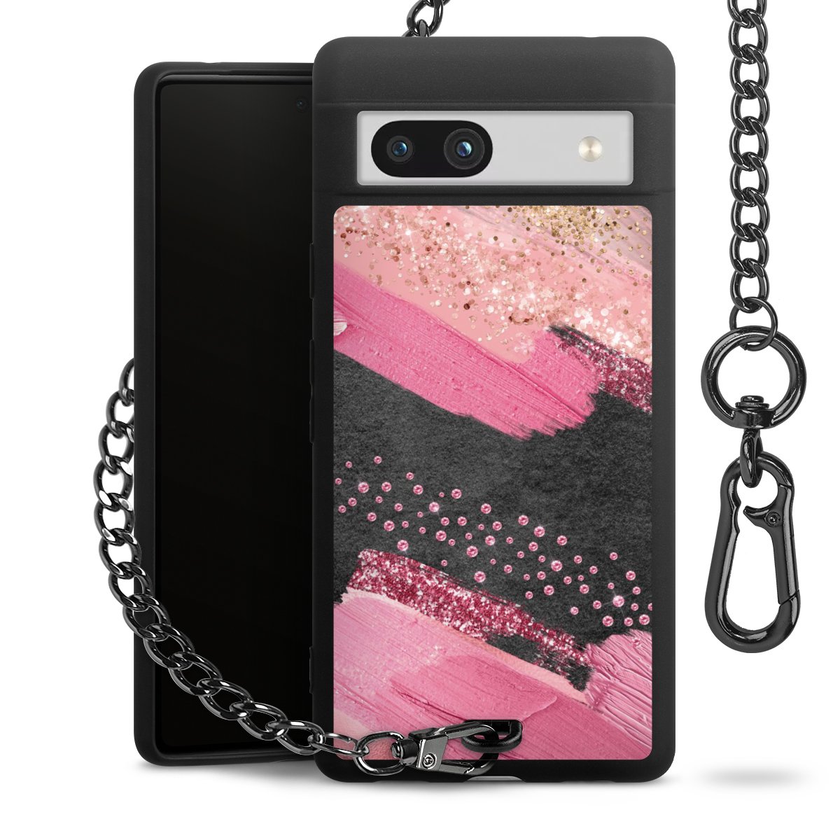 • Mattschwarze Handyhülle mit Metallkette