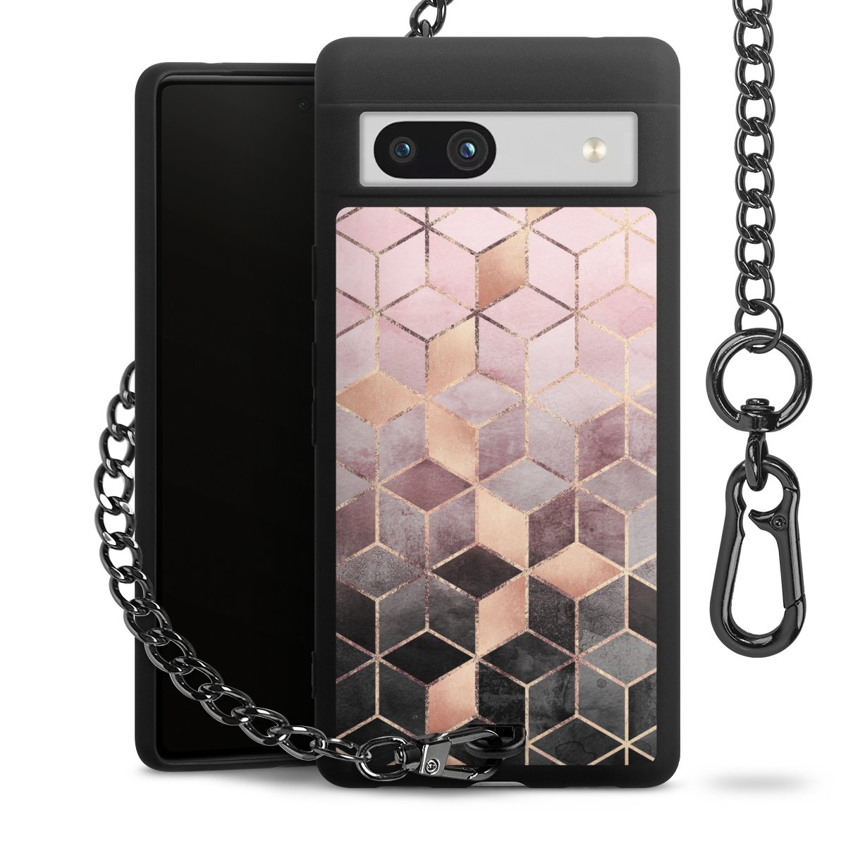 Die mattschwarze Silikon-Handyhülle besteht aus robustem TPU (thermoplastisches Polyurethan). Sie ist flexibel und schützt Dein Smartphone vor Stößen und Kratzern. Die Kette sowie der Karabinerhaken sind aus Metall in Gunmetal-Optik gefertigt. Für dieses Produkt kommen ausschließlich TÜV-geprüfte Materialien zum Einsatz.