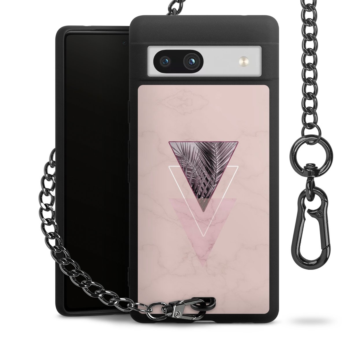 • Mattschwarze Handyhülle mit Metallkette