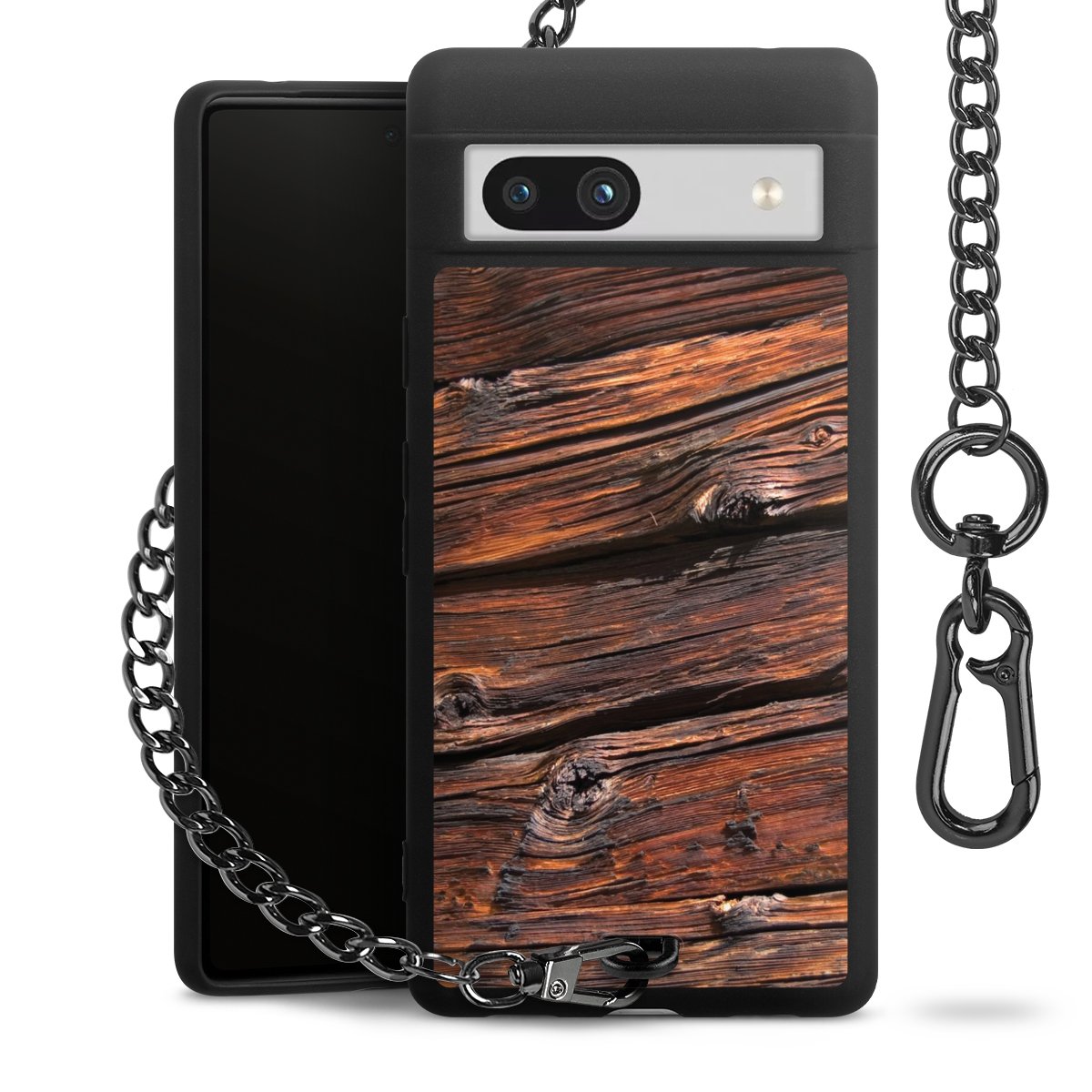 - Mattschwarze Handyhülle mit Metallkette