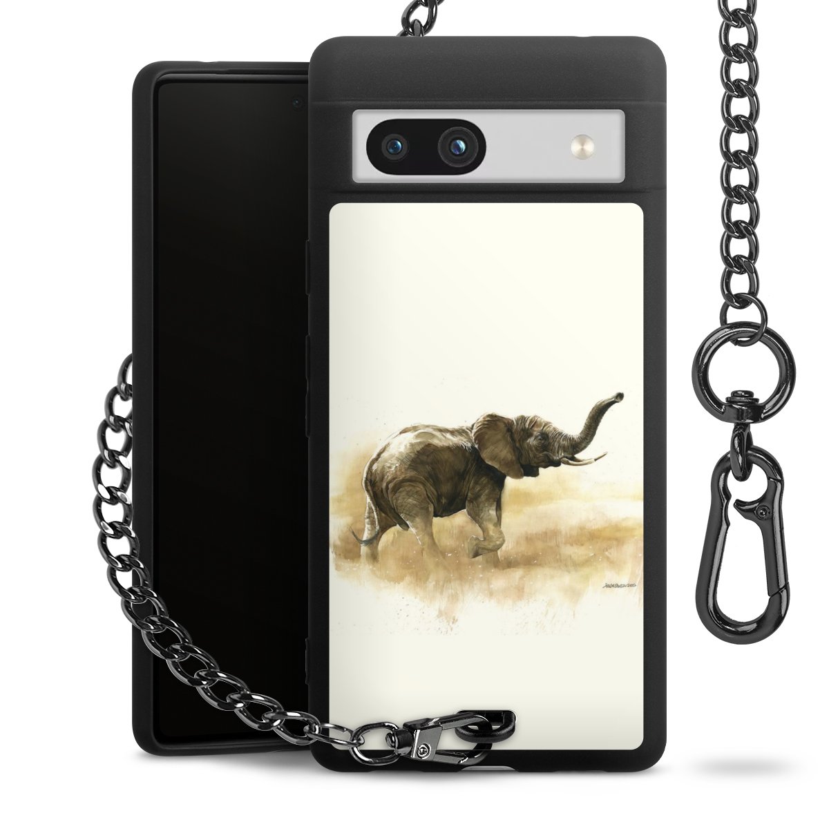 Die mattschwarze Silikon-Handyhülle besteht aus robustem TPU (thermoplastisches Polyurethan). Sie ist flexibel und schützt Dein Smartphone vor Stößen und Kratzern. Die Kette sowie der Karabinerhaken sind aus Metall in Gunmetal-Optik gefertigt. Für dieses Produkt kommen ausschließlich TÜV-geprüfte Materialien zum Einsatz.