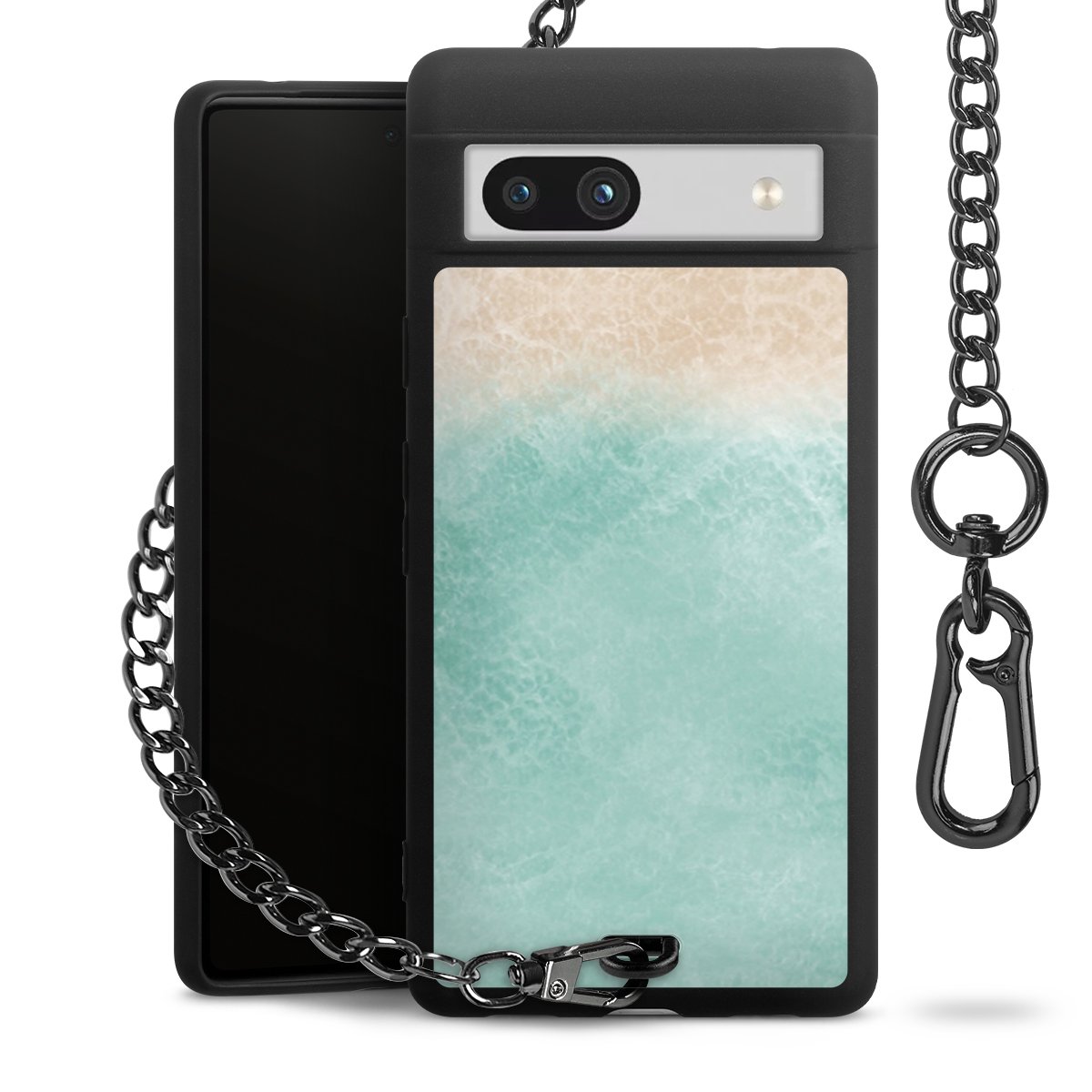 Die mattschwarze Silikon-Handyhülle besteht aus robustem TPU (thermoplastisches Polyurethan). Sie ist flexibel und schützt Dein Smartphone vor Stößen und Kratzern. Die Kette sowie der Karabinerhaken sind aus Metall in Gunmetal-Optik gefertigt. Für dieses Produkt kommen ausschließlich TÜV-geprüfte Materialien zum Einsatz.