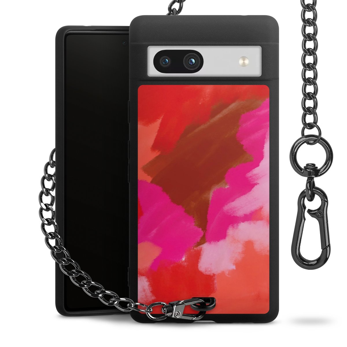 • Mattschwarze Handyhülle mit Metallkette