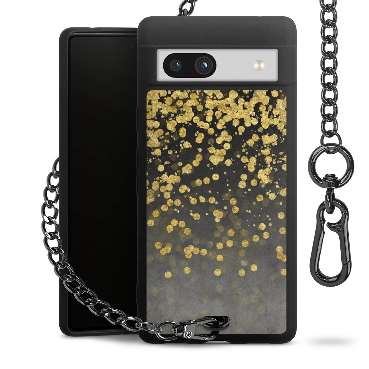 • Mattschwarze Handyhülle mit Metallkette