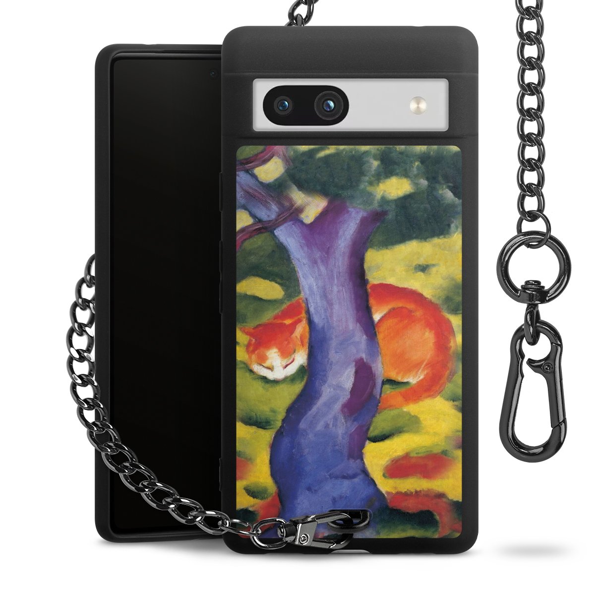 Die mattschwarze Silikon-Handyhülle besteht aus robustem TPU (thermoplastisches Polyurethan). Sie ist flexibel und schützt Dein Smartphone vor Stößen und Kratzern. Die Kette sowie der Karabinerhaken sind aus Metall in Gunmetal-Optik gefertigt. Für dieses Produkt kommen ausschließlich TÜV-geprüfte Materialien zum Einsatz.