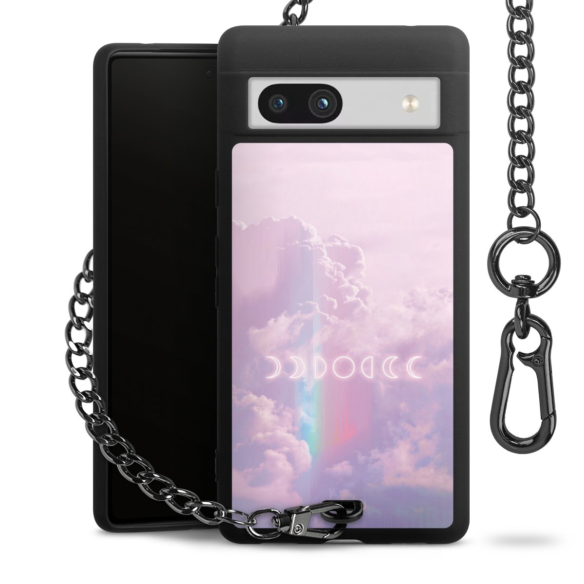 Die mattschwarze Silikon-Handyhülle besteht aus robustem TPU (thermoplastisches Polyurethan). Sie ist flexibel und schützt Dein Smartphone vor Stößen und Kratzern. Die Kette sowie der Karabinerhaken sind aus Metall in Gunmetal-Optik gefertigt. Für dieses Produkt kommen ausschließlich TÜV-geprüfte Materialien zum Einsatz.