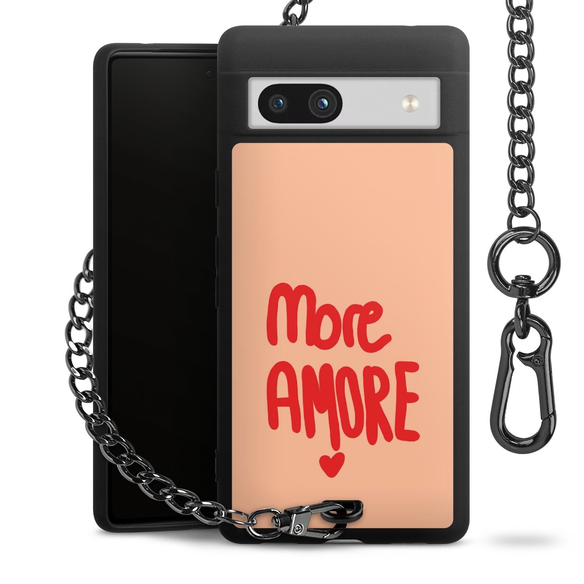 • Mattschwarze Handyhülle mit Metallkette