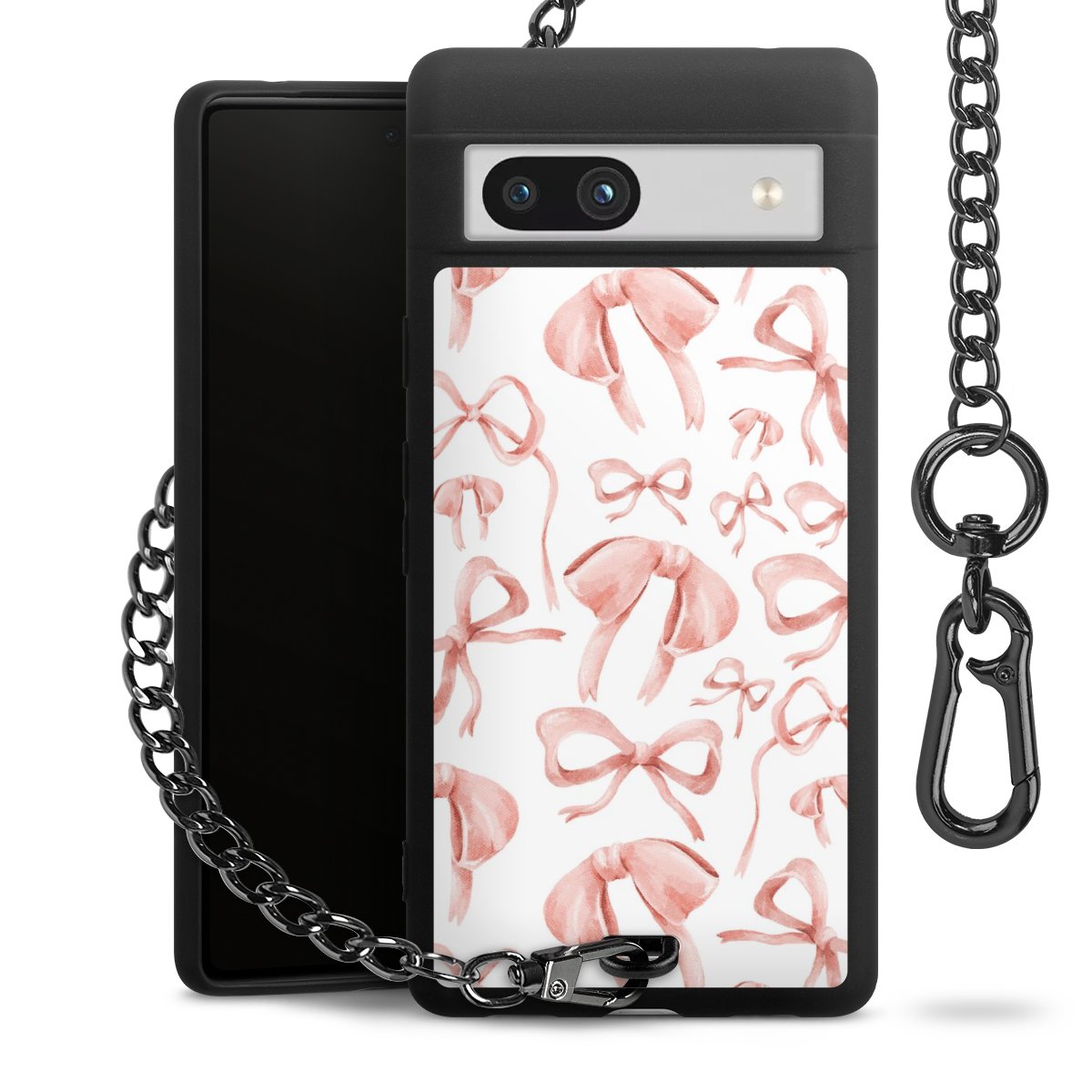 • Mattschwarze Handyhülle mit Metallkette