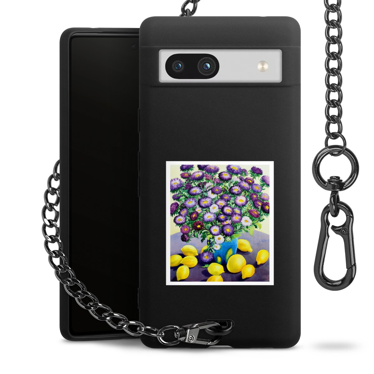 - Mattschwarze Handyhülle mit Metallkette
