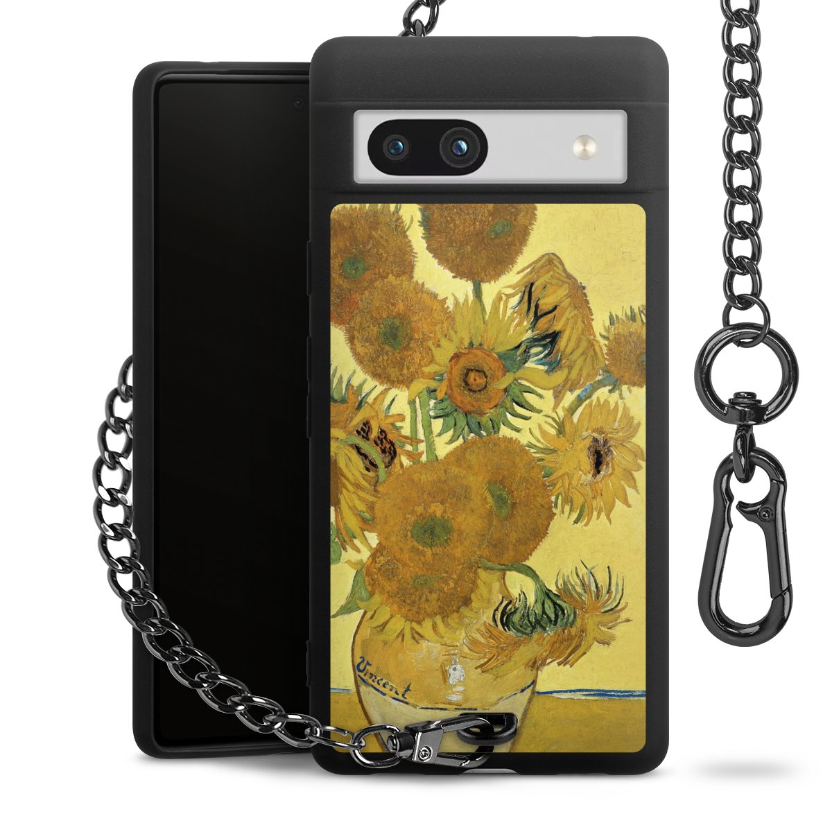 Die mattschwarze Silikon-Handyhülle besteht aus robustem TPU (thermoplastisches Polyurethan). Sie ist flexibel und schützt Dein Smartphone vor Stößen und Kratzern. Die Kette sowie der Karabinerhaken sind aus Metall in Gunmetal-Optik gefertigt. Für dieses Produkt kommen ausschließlich TÜV-geprüfte Materialien zum Einsatz.