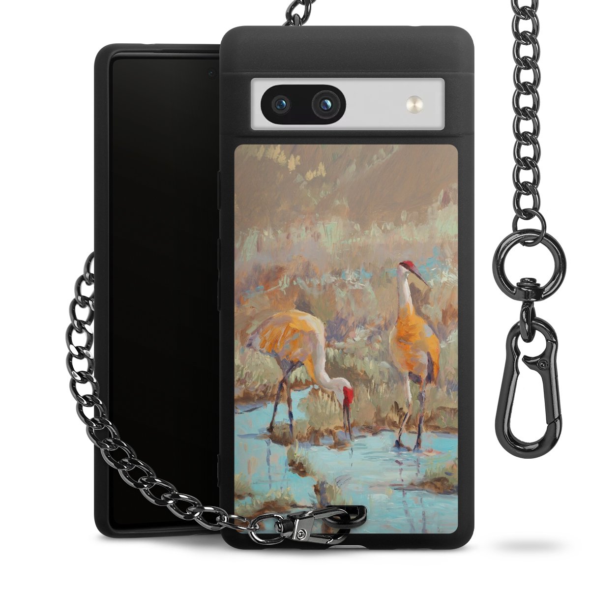- Mattschwarze Handyhülle mit Metallkette