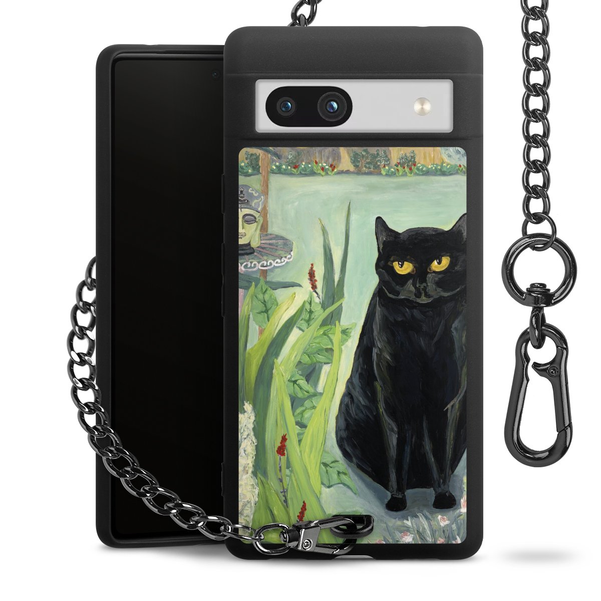 Die mattschwarze Silikon-Handyhülle besteht aus robustem TPU (thermoplastisches Polyurethan). Sie ist flexibel und schützt Dein Smartphone vor Stößen und Kratzern. Die Kette sowie der Karabinerhaken sind aus Metall in Gunmetal-Optik gefertigt. Für dieses Produkt kommen ausschließlich TÜV-geprüfte Materialien zum Einsatz.