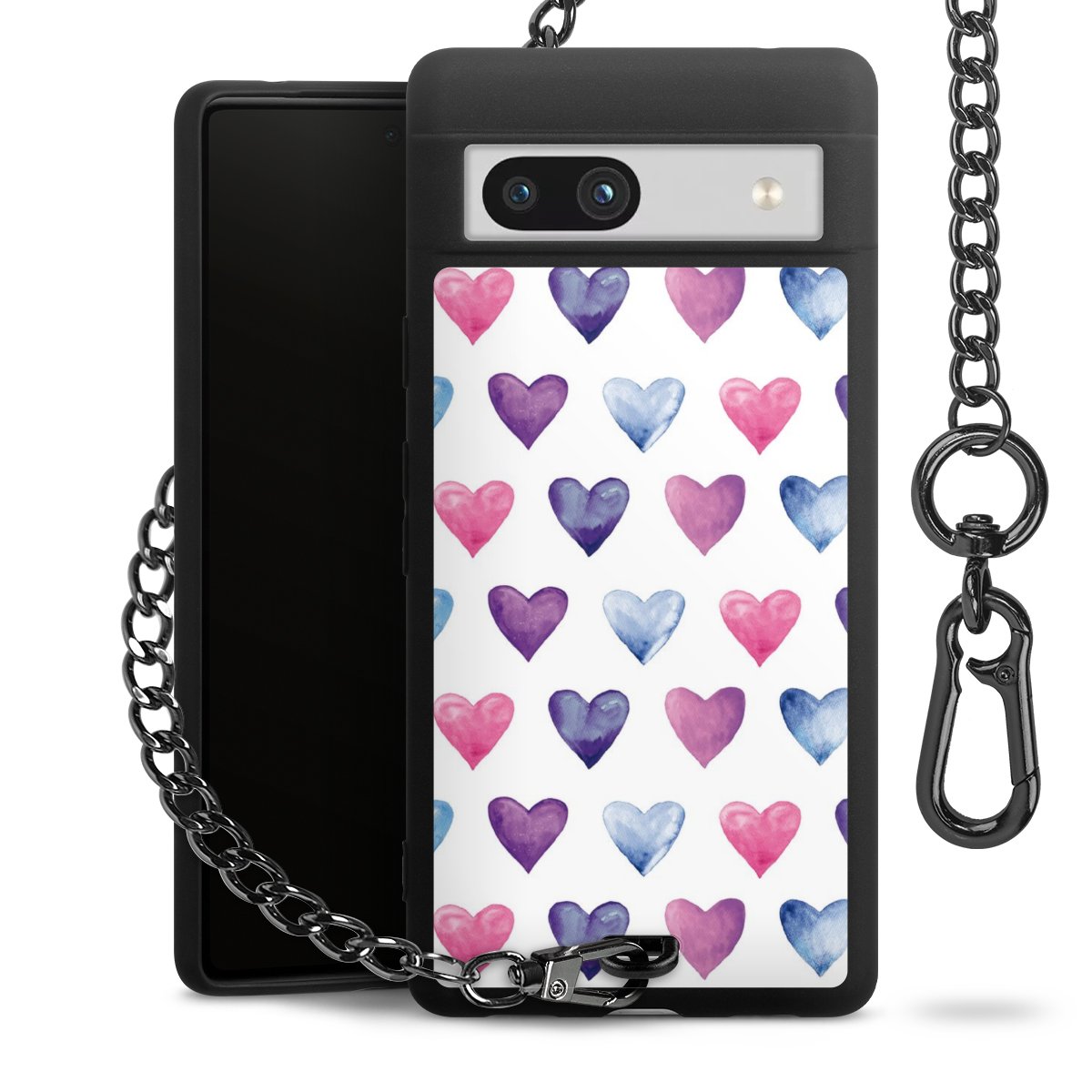 - Mattschwarze Handyhülle mit Metallkette