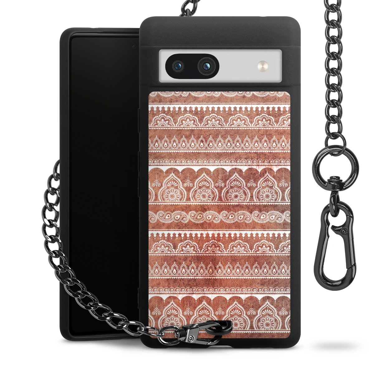 • Mattschwarze Handyhülle mit Metallkette