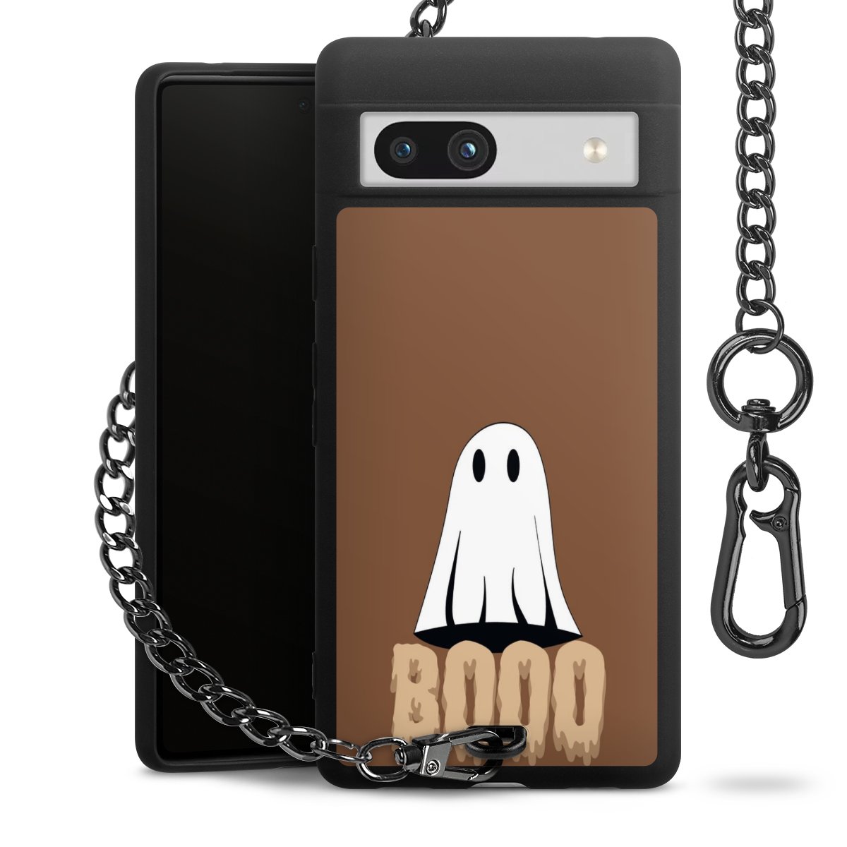 - Mattschwarze Handyhülle mit Metallkette