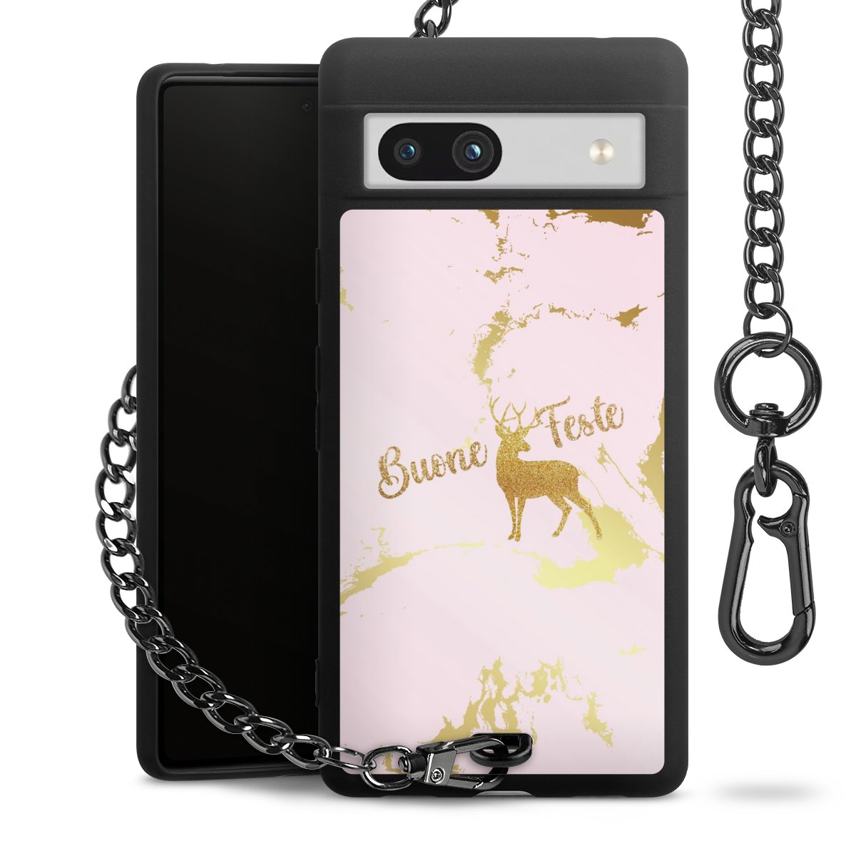 - Mattschwarze Handyhülle mit Metallkette