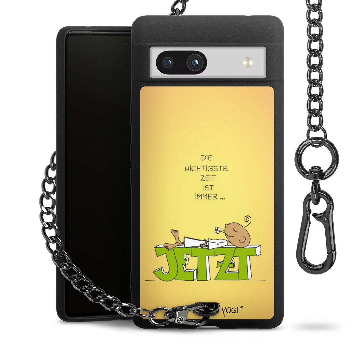 Die mattschwarze Silikon-Handyhülle besteht aus robustem TPU (thermoplastisches Polyurethan). Sie ist flexibel und schützt Dein Smartphone vor Stößen und Kratzern. Die Kette sowie der Karabinerhaken sind aus Metall in Gunmetal-Optik gefertigt. Für dieses Produkt kommen ausschließlich TÜV-geprüfte Materialien zum Einsatz.