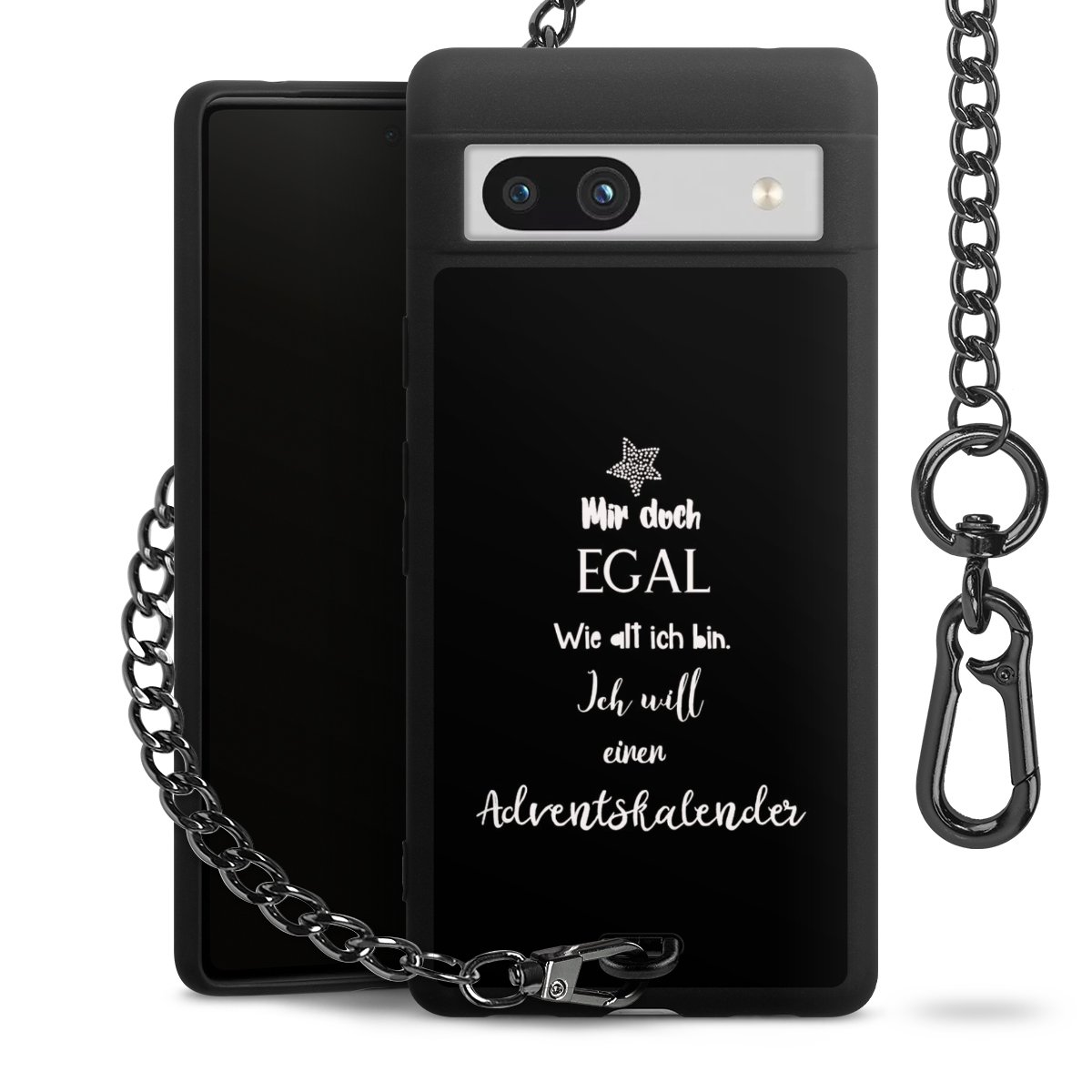 Die mattschwarze Silikon-Handyhülle besteht aus robustem TPU (thermoplastisches Polyurethan). Sie ist flexibel und schützt Dein Smartphone vor Stößen und Kratzern. Die Kette sowie der Karabinerhaken sind aus Metall in Gunmetal-Optik gefertigt. Für dieses Produkt kommen ausschließlich TÜV-geprüfte Materialien zum Einsatz.