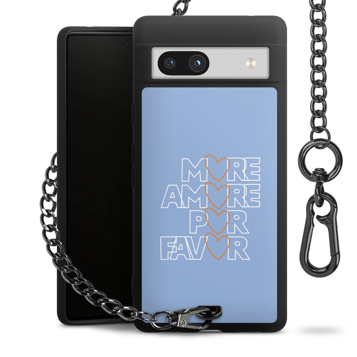 - Mattschwarze Handyhülle mit Metallkette