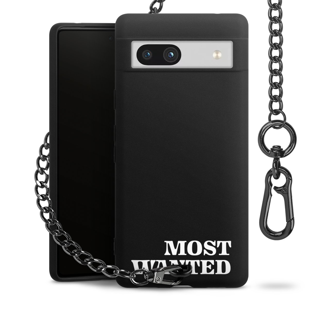 Die mattschwarze Silikon-Handyhülle besteht aus robustem TPU (thermoplastisches Polyurethan). Sie ist flexibel und schützt Dein Smartphone vor Stößen und Kratzern. Die Kette sowie der Karabinerhaken sind aus Metall in Gunmetal-Optik gefertigt. Für dieses Produkt kommen ausschließlich TÜV-geprüfte Materialien zum Einsatz.