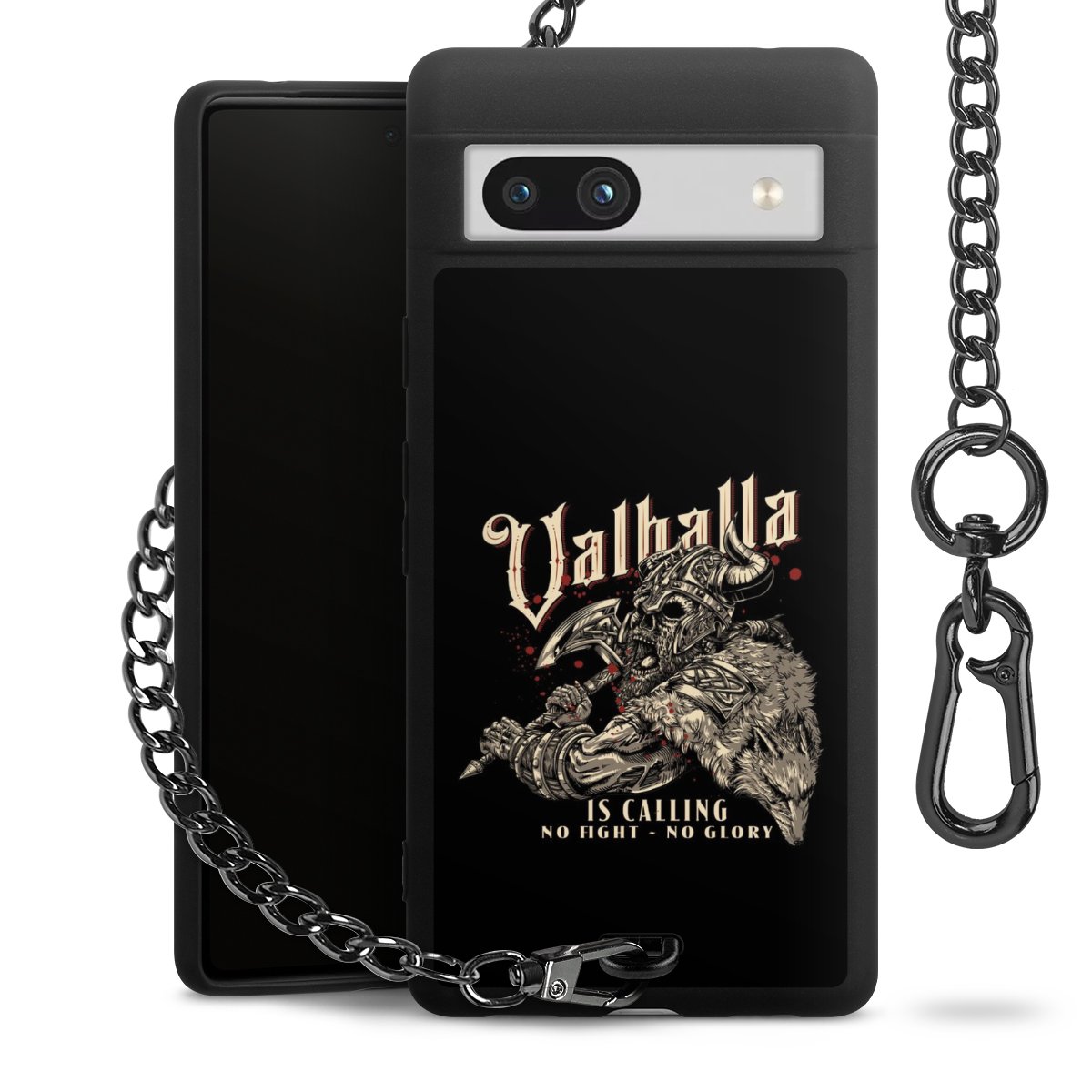 Die mattschwarze Silikon-Handyhülle besteht aus robustem TPU (thermoplastisches Polyurethan). Sie ist flexibel und schützt Dein Smartphone vor Stößen und Kratzern. Die Kette sowie der Karabinerhaken sind aus Metall in Gunmetal-Optik gefertigt. Für dieses Produkt kommen ausschließlich TÜV-geprüfte Materialien zum Einsatz.