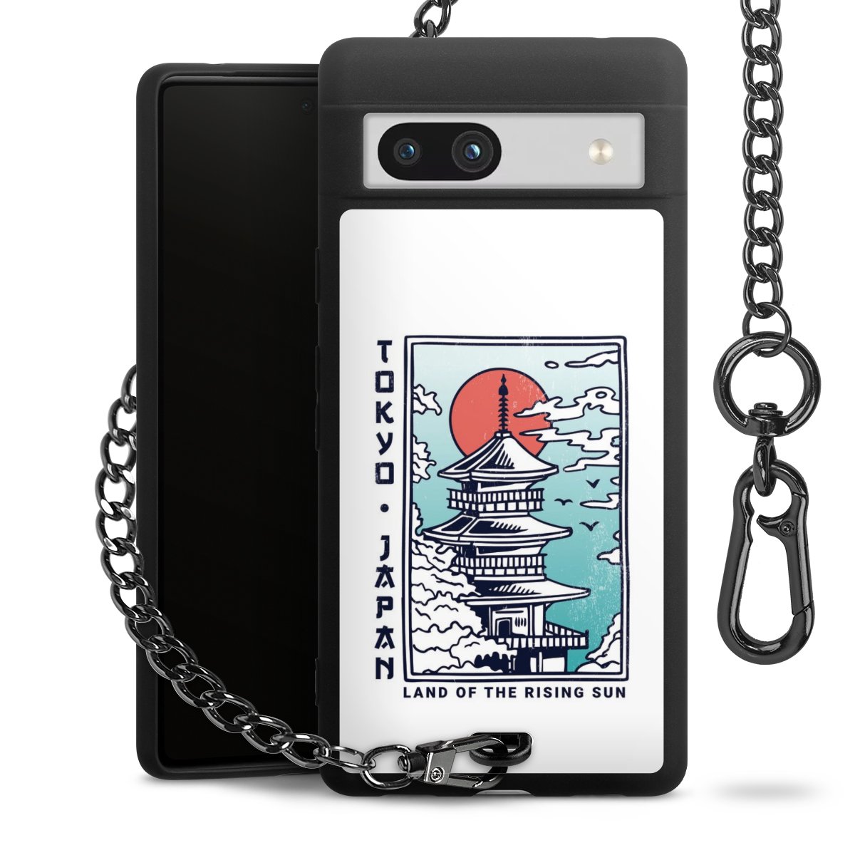 Die mattschwarze Silikon-Handyhülle besteht aus robustem TPU (thermoplastisches Polyurethan). Sie ist flexibel und schützt Dein Smartphone vor Stößen und Kratzern. Die Kette sowie der Karabinerhaken sind aus Metall in Gunmetal-Optik gefertigt. Für dieses Produkt kommen ausschließlich TÜV-geprüfte Materialien zum Einsatz.