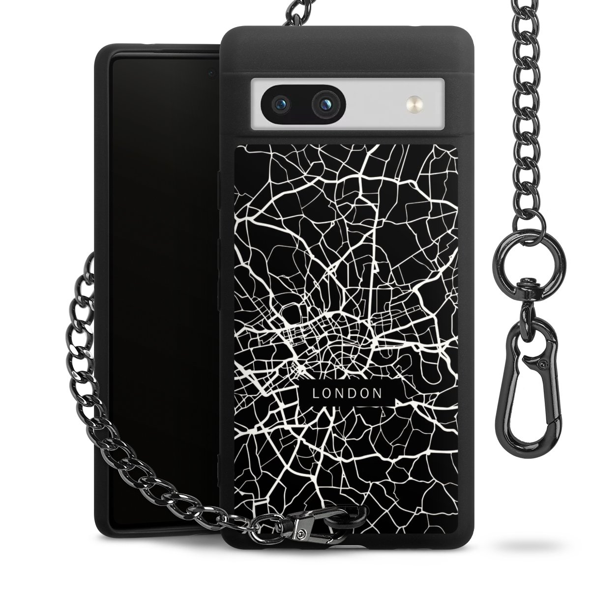 - Mattschwarze Handyhülle mit Metallkette