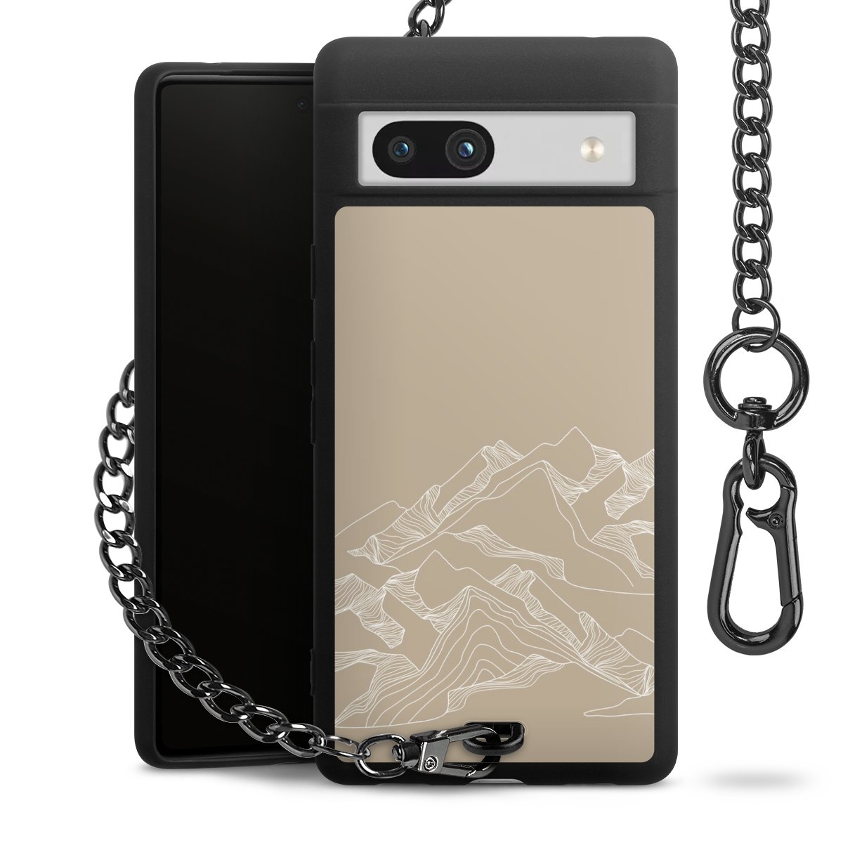 Die mattschwarze Silikon-Handyhülle besteht aus robustem TPU (thermoplastisches Polyurethan). Sie ist flexibel und schützt Dein Smartphone vor Stößen und Kratzern. Die Kette sowie der Karabinerhaken sind aus Metall in Gunmetal-Optik gefertigt. Für dieses Produkt kommen ausschließlich TÜV-geprüfte Materialien zum Einsatz.