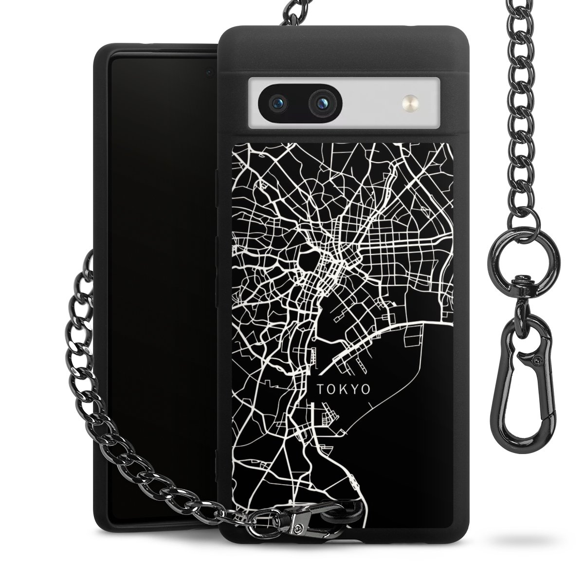 Die mattschwarze Silikon-Handyhülle besteht aus robustem TPU (thermoplastisches Polyurethan). Sie ist flexibel und schützt Dein Smartphone vor Stößen und Kratzern. Die Kette sowie der Karabinerhaken sind aus Metall in Gunmetal-Optik gefertigt. Für dieses Produkt kommen ausschließlich TÜV-geprüfte Materialien zum Einsatz.