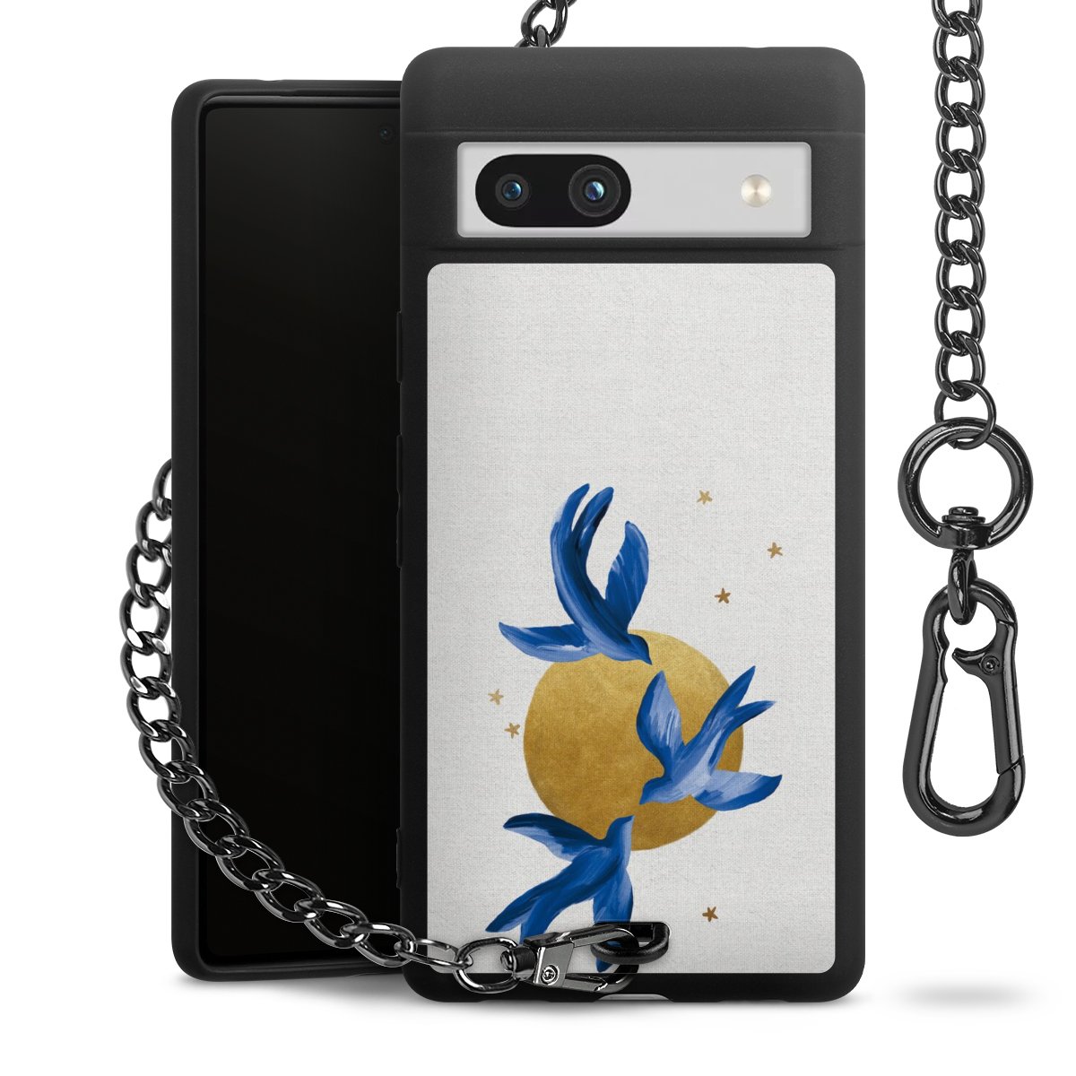 • Mattschwarze Handyhülle mit Metallkette