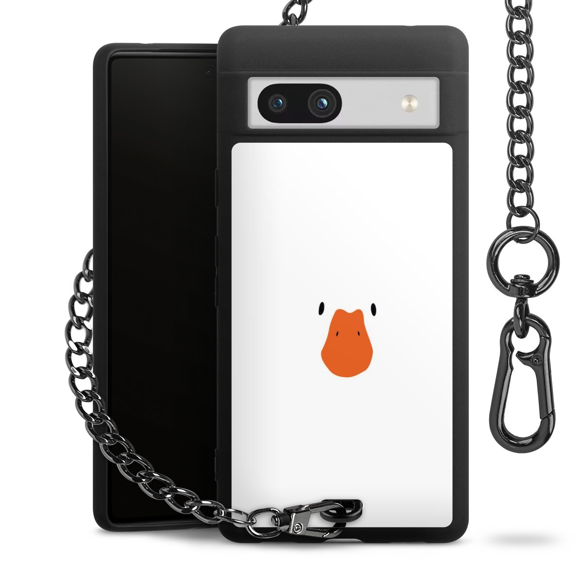 Die mattschwarze Silikon-Handyhülle besteht aus robustem TPU (thermoplastisches Polyurethan). Sie ist flexibel und schützt Dein Smartphone vor Stößen und Kratzern. Die Kette sowie der Karabinerhaken sind aus Metall in Gunmetal-Optik gefertigt. Für dieses Produkt kommen ausschließlich TÜV-geprüfte Materialien zum Einsatz.
