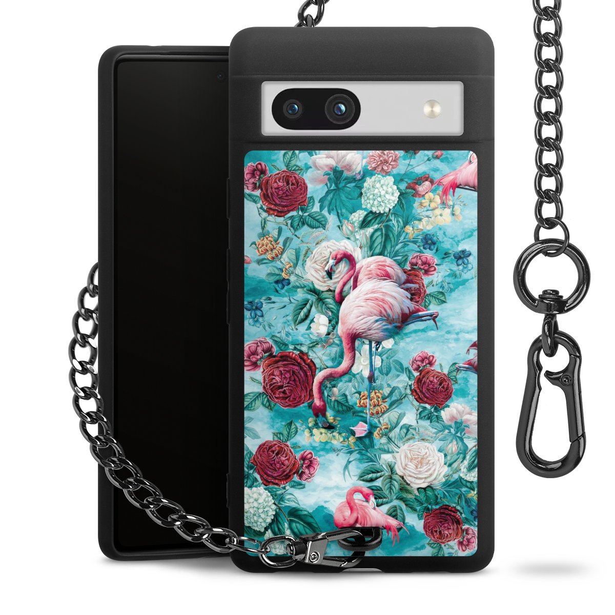 Die mattschwarze Silikon-Handyhülle besteht aus robustem TPU (thermoplastisches Polyurethan). Sie ist flexibel und schützt Dein Smartphone vor Stößen und Kratzern. Die Kette sowie der Karabinerhaken sind aus Metall in Gunmetal-Optik gefertigt. Für dieses Produkt kommen ausschließlich TÜV-geprüfte Materialien zum Einsatz.