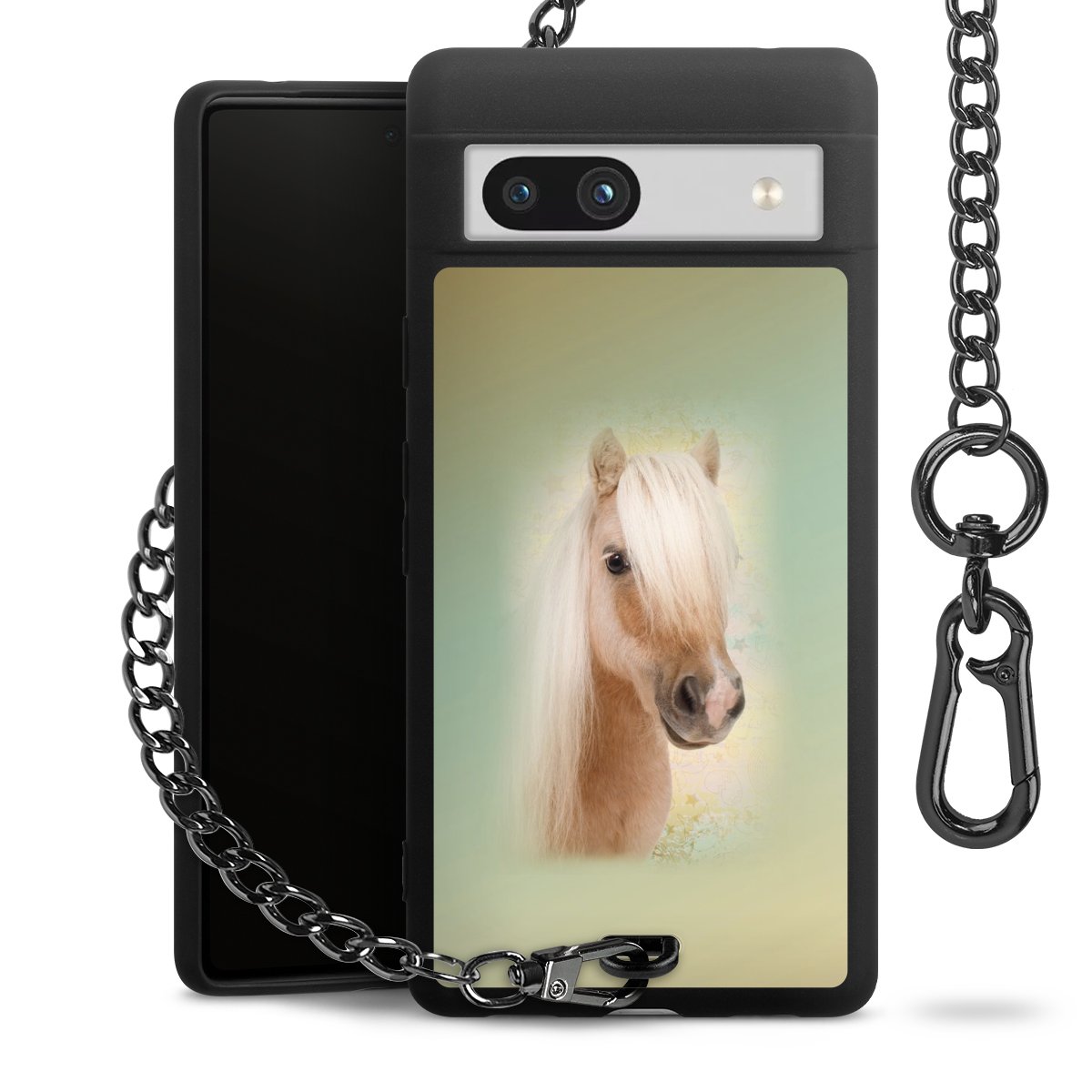 Die mattschwarze Silikon-Handyhülle besteht aus robustem TPU (thermoplastisches Polyurethan). Sie ist flexibel und schützt Dein Smartphone vor Stößen und Kratzern. Die Kette sowie der Karabinerhaken sind aus Metall in Gunmetal-Optik gefertigt. Für dieses Produkt kommen ausschließlich TÜV-geprüfte Materialien zum Einsatz.