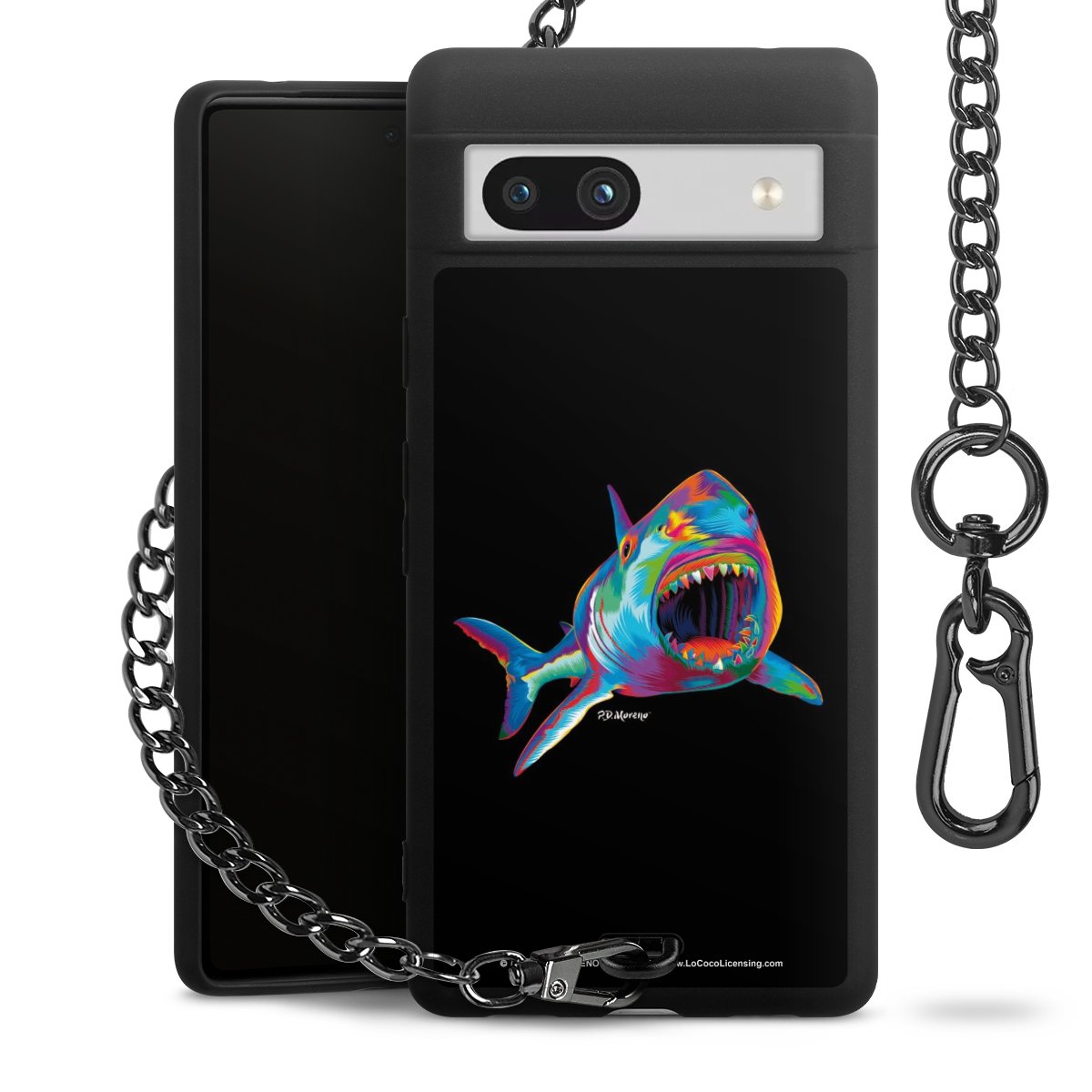 Die mattschwarze Silikon-Handyhülle besteht aus robustem TPU (thermoplastisches Polyurethan). Sie ist flexibel und schützt Dein Smartphone vor Stößen und Kratzern. Die Kette sowie der Karabinerhaken sind aus Metall in Gunmetal-Optik gefertigt. Für dieses Produkt kommen ausschließlich TÜV-geprüfte Materialien zum Einsatz.