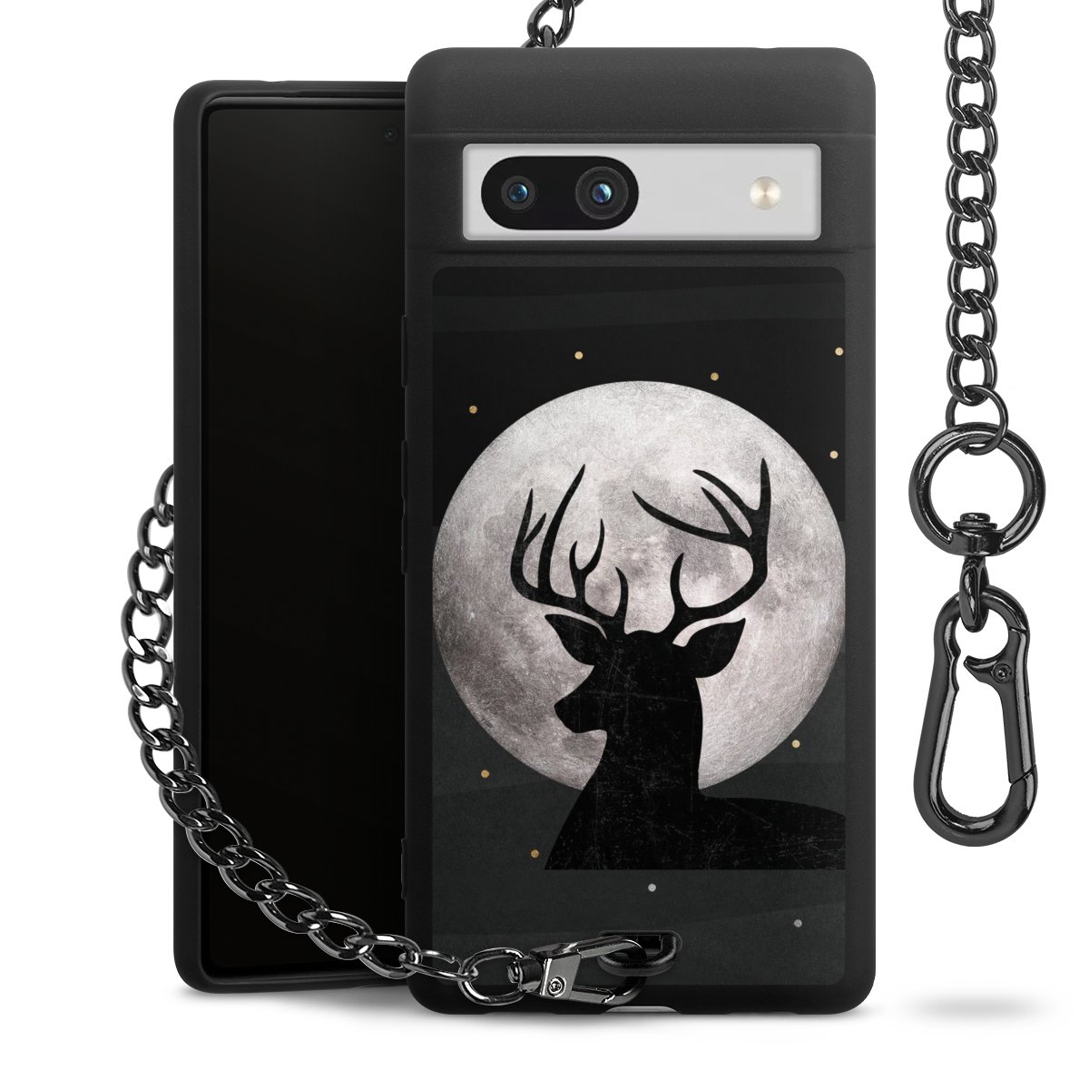 Die mattschwarze Silikon-Handyhülle besteht aus robustem TPU (thermoplastisches Polyurethan). Sie ist flexibel und schützt Dein Smartphone vor Stößen und Kratzern. Die Kette sowie der Karabinerhaken sind aus Metall in Gunmetal-Optik gefertigt. Für dieses Produkt kommen ausschließlich TÜV-geprüfte Materialien zum Einsatz.
