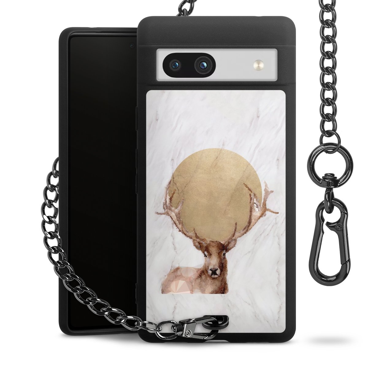 Die mattschwarze Silikon-Handyhülle besteht aus robustem TPU (thermoplastisches Polyurethan). Sie ist flexibel und schützt Dein Smartphone vor Stößen und Kratzern. Die Kette sowie der Karabinerhaken sind aus Metall in Gunmetal-Optik gefertigt. Für dieses Produkt kommen ausschließlich TÜV-geprüfte Materialien zum Einsatz.
