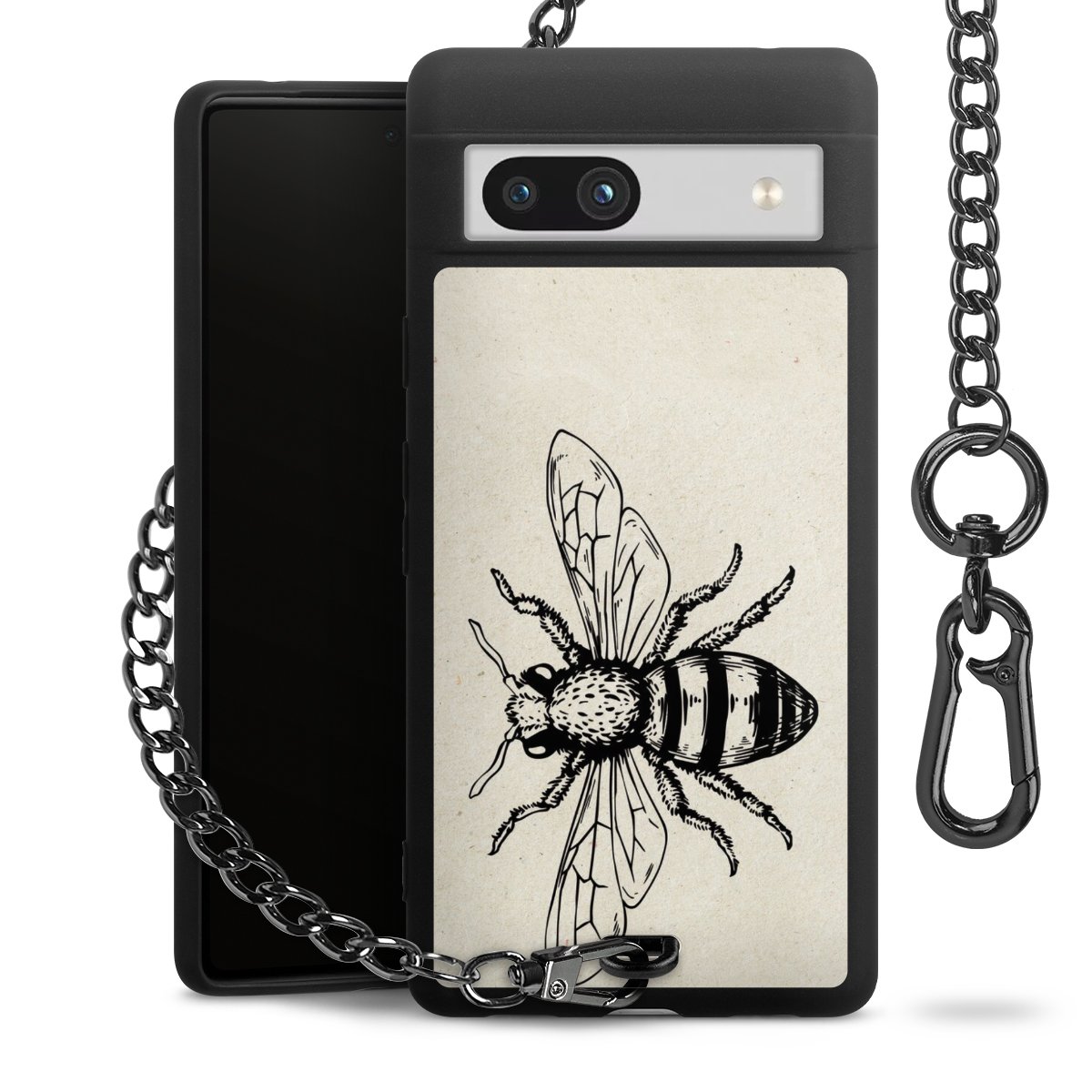 Die mattschwarze Silikon-Handyhülle besteht aus robustem TPU (thermoplastisches Polyurethan). Sie ist flexibel und schützt Dein Smartphone vor Stößen und Kratzern. Die Kette sowie der Karabinerhaken sind aus Metall in Gunmetal-Optik gefertigt. Für dieses Produkt kommen ausschließlich TÜV-geprüfte Materialien zum Einsatz.
