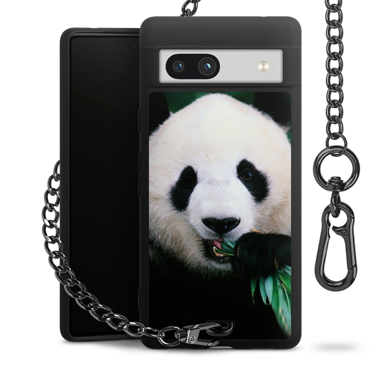 - Mattschwarze Handyhülle mit Metallkette