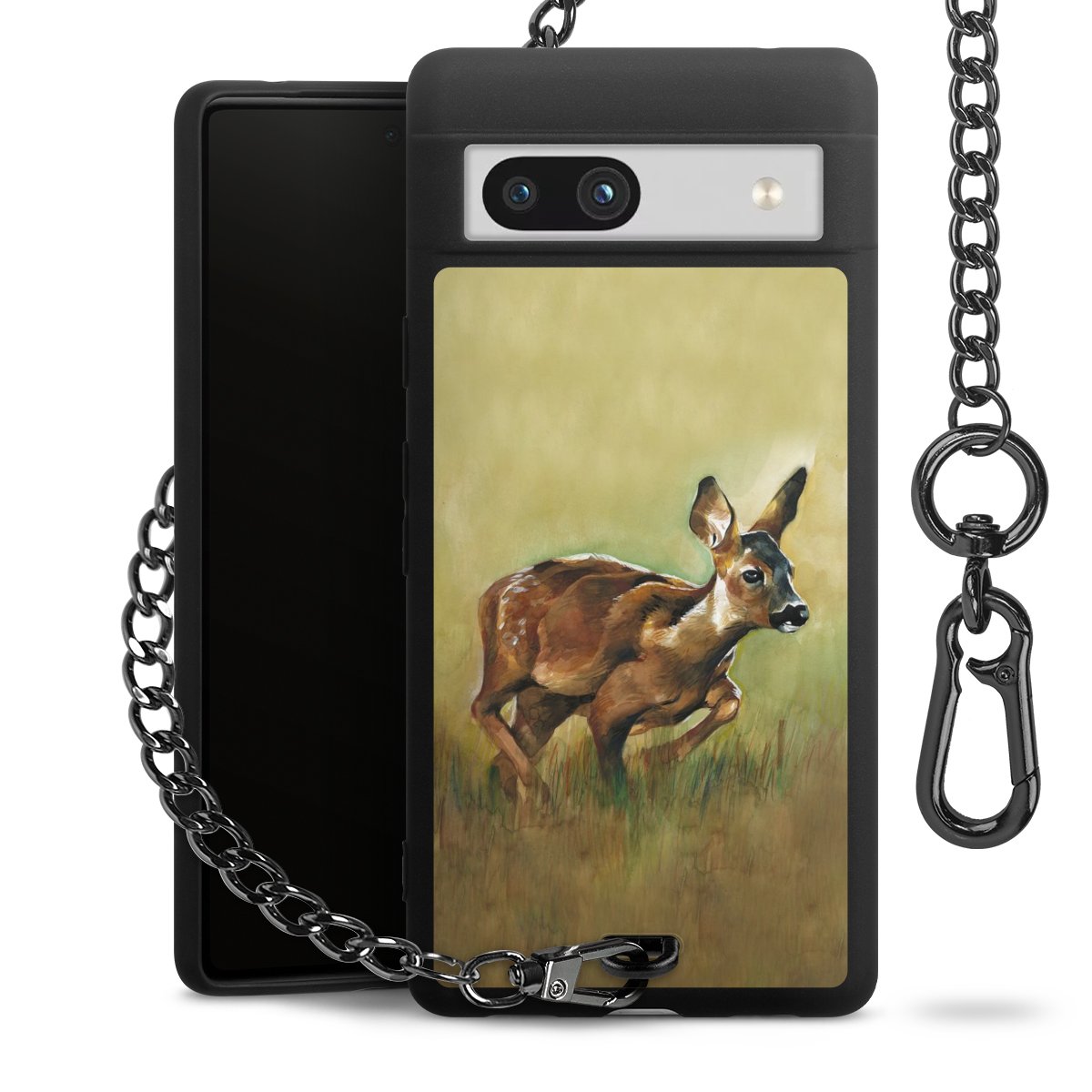 Die mattschwarze Silikon-Handyhülle besteht aus robustem TPU (thermoplastisches Polyurethan). Sie ist flexibel und schützt Dein Smartphone vor Stößen und Kratzern. Die Kette sowie der Karabinerhaken sind aus Metall in Gunmetal-Optik gefertigt. Für dieses Produkt kommen ausschließlich TÜV-geprüfte Materialien zum Einsatz.
