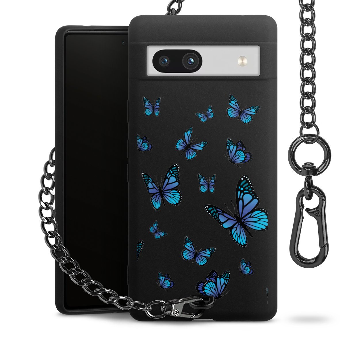 • Mattschwarze Handyhülle mit Metallkette